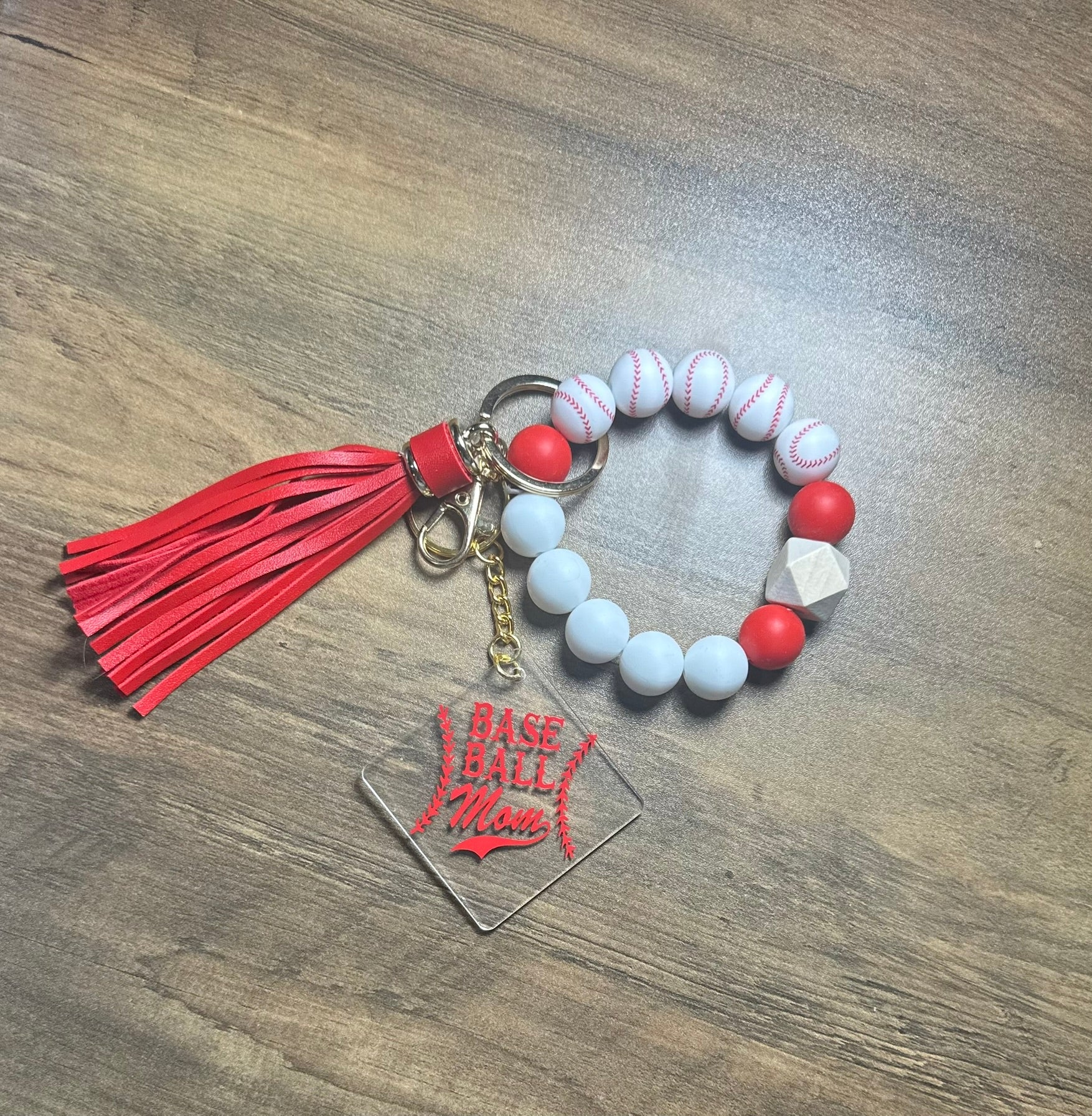 Show your team spirit in style with this adorable Baseball Mom keychain! Designed with soft, flexible silicone beads, it’s both cute and comfortable to wear. The stretchy wristlet fits easily around your wrist, keeping your keys, fob, or ID close at hand while you cheer from the stands.
