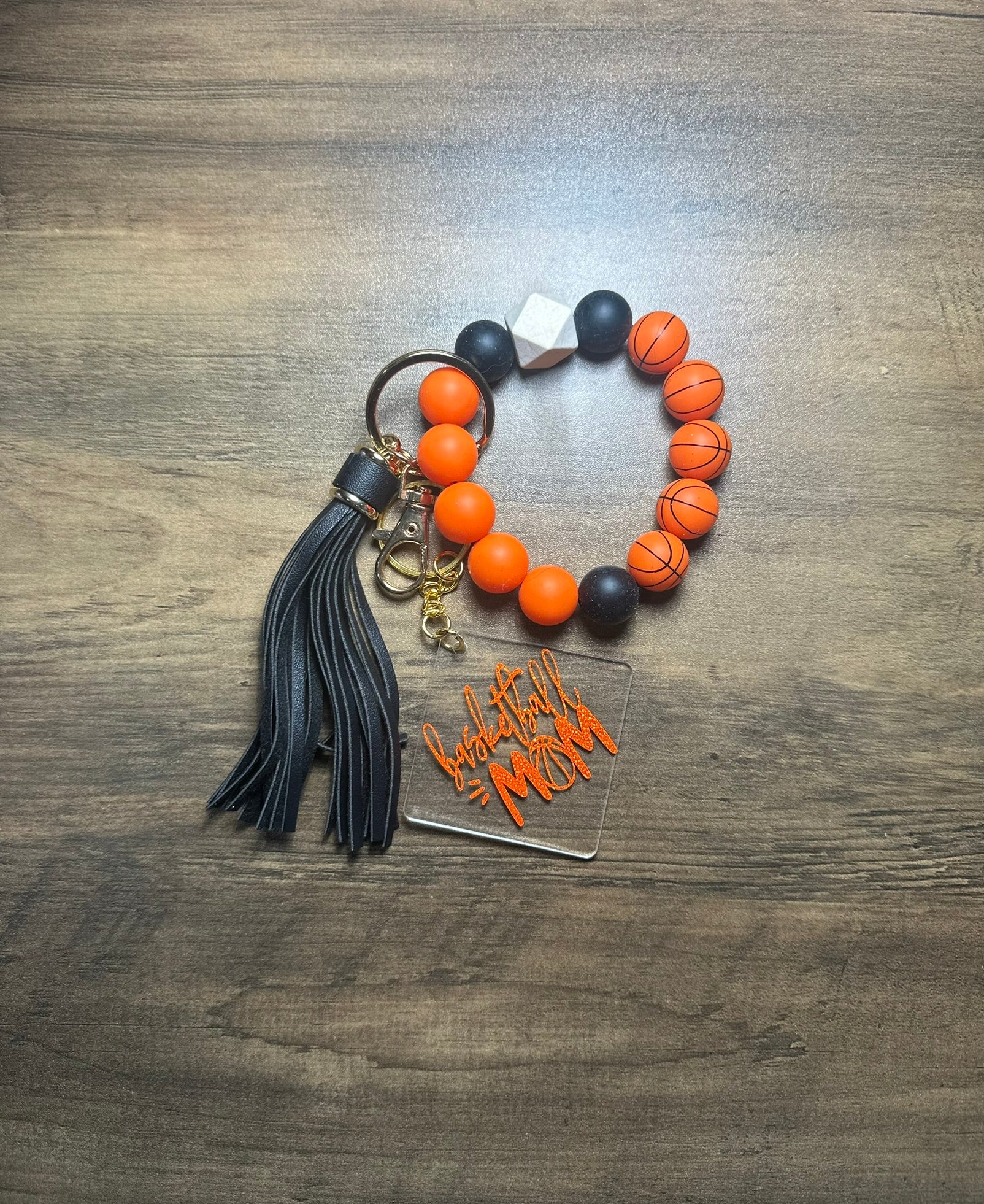 Show your team spirit in style with this adorable Basketball Mom keychain! Designed with soft, flexible silicone beads, it’s both cute and comfortable to wear. The stretchy wristlet fits easily around your wrist, keeping your keys, fob, or ID close at hand while you cheer from the stands.